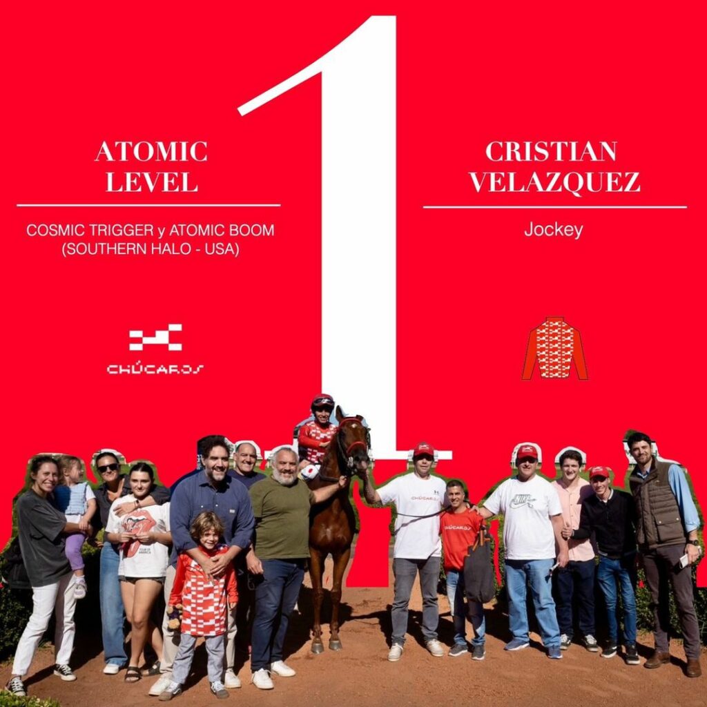 Montado por Cristian Velazquez, nuestro potrillo atómico ganó los 1400metros del Premio Miss Pinky en 1:05:18 sobre pista pesada.